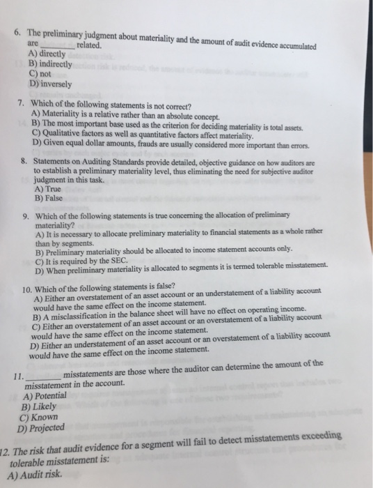 Solved 6 The Preliminary Judgment About Materiality And The Chegg Com